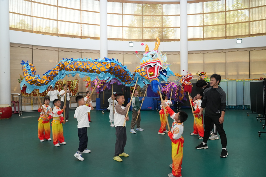 “小白龙信俗”非遗展示馆设在吕巷镇社区党群服务中心内,揭牌、点睛、少儿暖场龙舞、镇舞龙队《龙腾盛世》演出、舞龙体验等环节精彩纷呈。馆内展陈着历经岁月沉淀的舞龙器具与史料,游客驻足其间,感受这项非遗数百年的脉络。一位参观者感慨:“以前只在书本上见过‘小白龙’,今天亲眼看到舞龙队伍穿过老街石桥,体验活动中,孩子们舞着龙笑成一团,那种朝气蓬勃的感觉,让人觉得文化真的活着。”